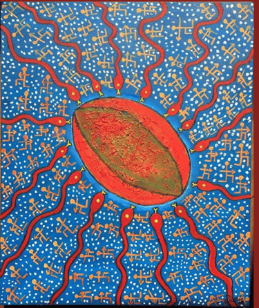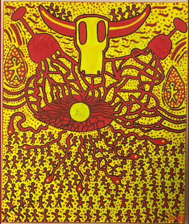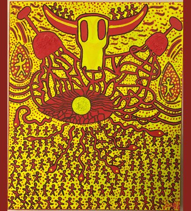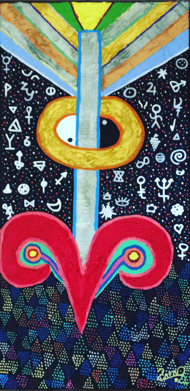 as Macumbas Gráphyas são pinturas à óleo em tela ou madeira que firmam um ponto ou um portal. este trabalho é desenvolvido sob encomenda ou a pronta entrega y circula pelo universo pessoal de cada pessoa que encomenda y pela poética dionisíaca do artista.