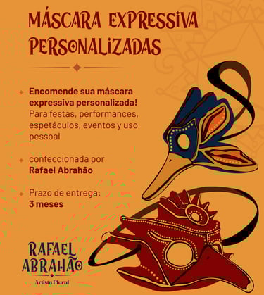 as Máscaras Expressivas são objetos desenvolvidos para teatros, performances, cortejos y demais necessidades. feitas sob medida a partir da técnica aprendida com o artista chileno Gaspar Olivares y do estudo y prática continuada em parceria com a cenógrafa y arquiteta Lais Damato.