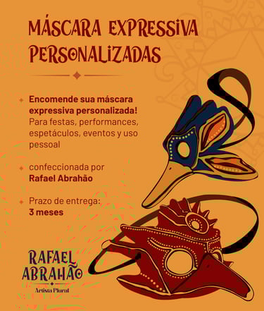 Não importa se você busca uma máscara expressiva, simbólica, neutra ou específica de alguma linguagem, estou pronto para dar vida à sua imaginação. Cada detalhe é cuidadosamente elaborado para garantir que sua máscara seja uma expressão autêntica do seu estilo, desejo e personalidade.