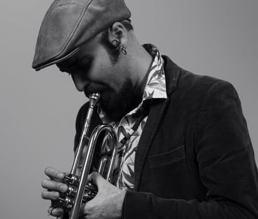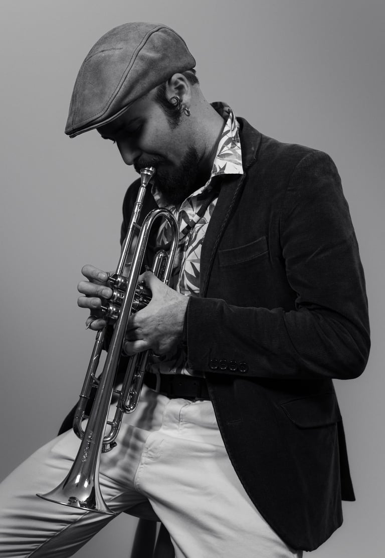 desde pequeno convivi com a música popular através dos discos que escutava em casa com minha família y com meu avô que é multi instrumentista. tentei tocar cordas y percussão, mas foi nos sopros que me encontrei. fui gaitista por 3 anos (2011-2013), mas foi com o trompete que encarnei minha vocação para esta arte apolínea.